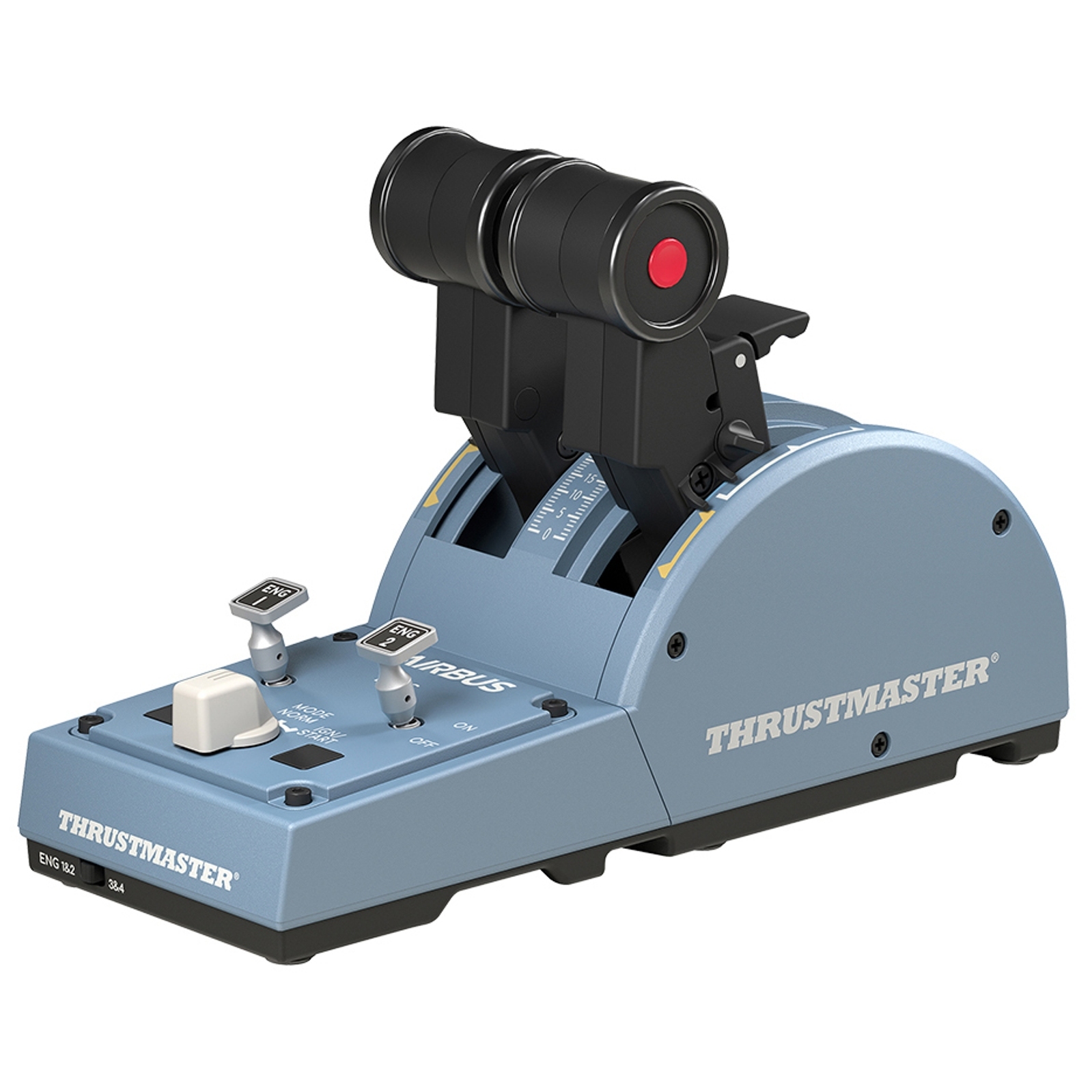 Блок TCA Quadrant Airbus Edition оснащен двумя отдельными рычагами управления, моделью для которых послужили настоящие рычаги, используемые на авиалайнерах Airbus.
