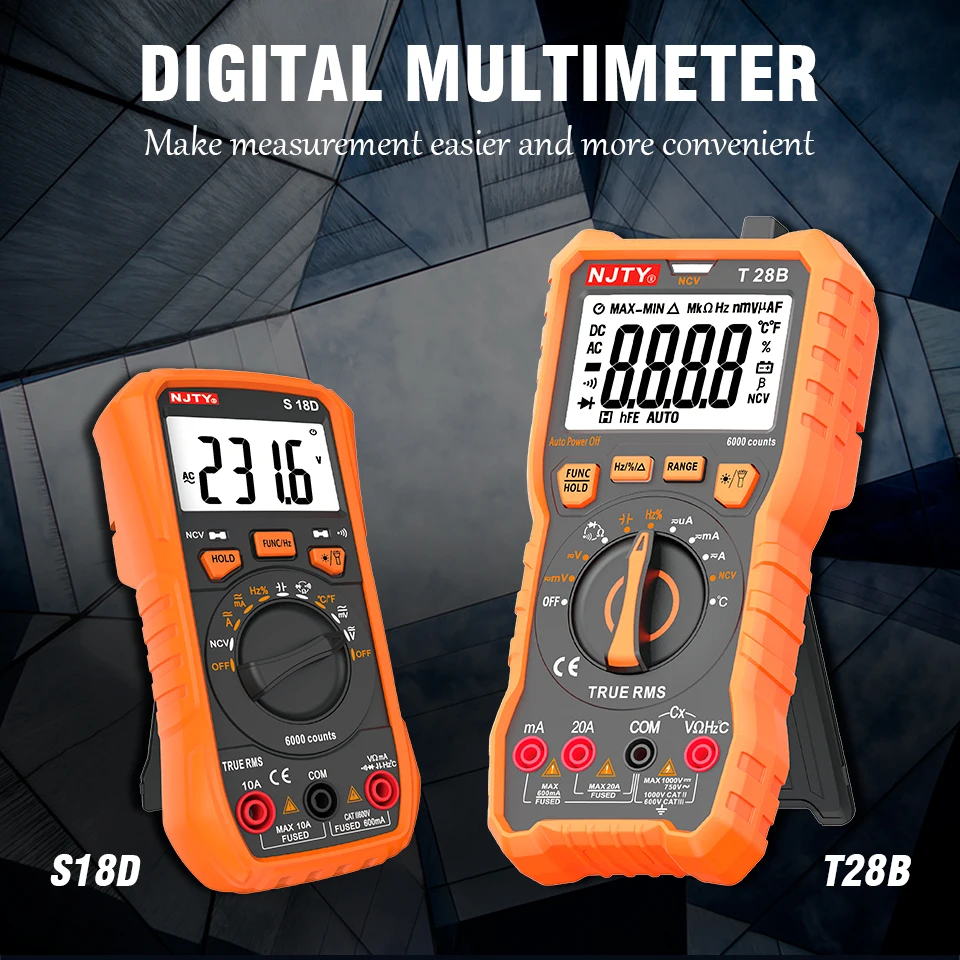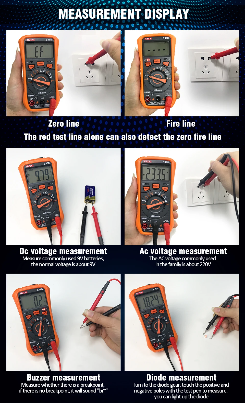 Большой диапазон измерения-6000 отсчетов автоматический мультиметр, напряжение постоянного тока до 1000 В, напряжение переменного тока до 750 В, ток переменного/постоянного тока до 10 А, сопротивление до 60 МОМ, емкость до 100 МФ, С термопарой типа K, быстро решает автомобильные и бытовые электрические проблемы.
