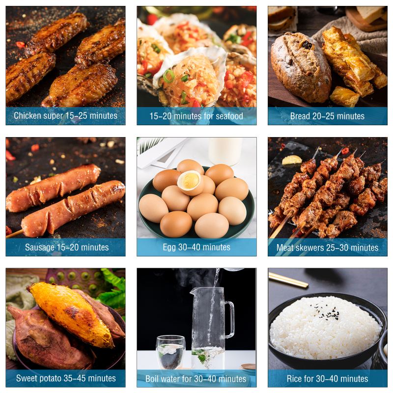 [Более быстрая скорость]:Традиционный гриль на древесном угле занимает не менее 30 минут для приготовления пищи из угольной индукции, в то время как солнечный гриль может Выпекать ее примерно за 15 минут.
