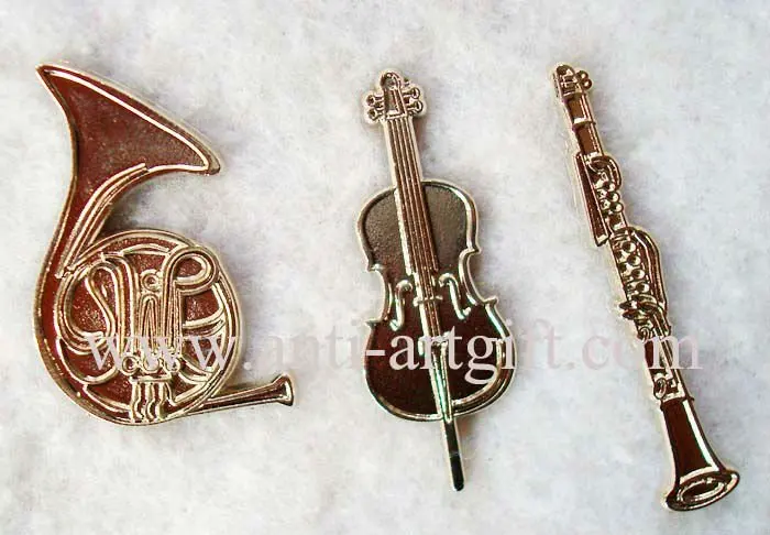 Product: Customized Instrument pin Badges Saxphone Violoncello Flute Metal logo antique style