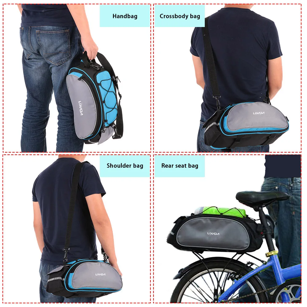 Многофункциональная сумка для заднего сиденья велосипеда с ручкой для переноски и регулируемым плечевым ремнем, может использоваться в качестве сумки и сумки на плечо. 13L емкость для хранения обеспечивает большое пространство для ваших предметов, полезное ездовое оборудование для любого велосипедиста.