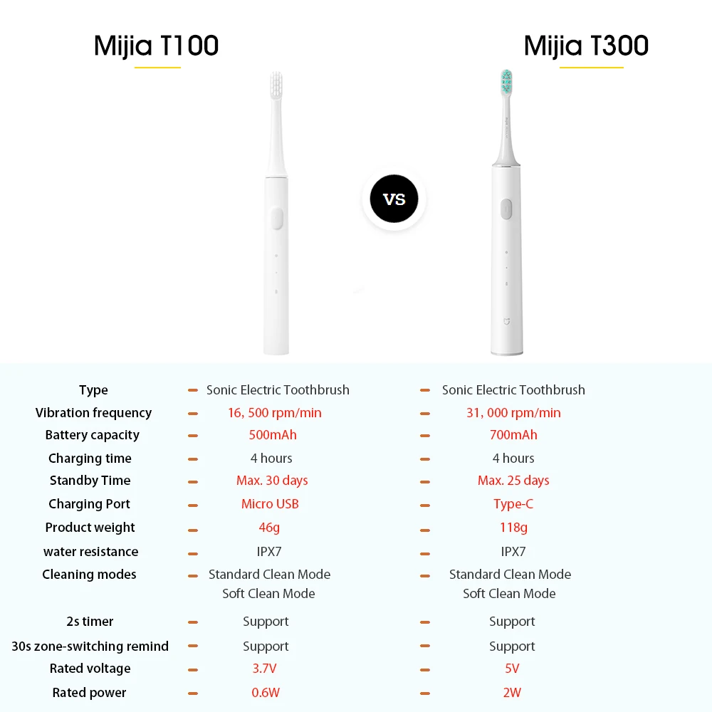 Xiaomi Mijia T100 Sonic электрическая зубная щетка для взрослых ультразвуковая автоматическая зубная щетка USB перезаряжаемая Водонепроницаемая зубная щетка для здоровья