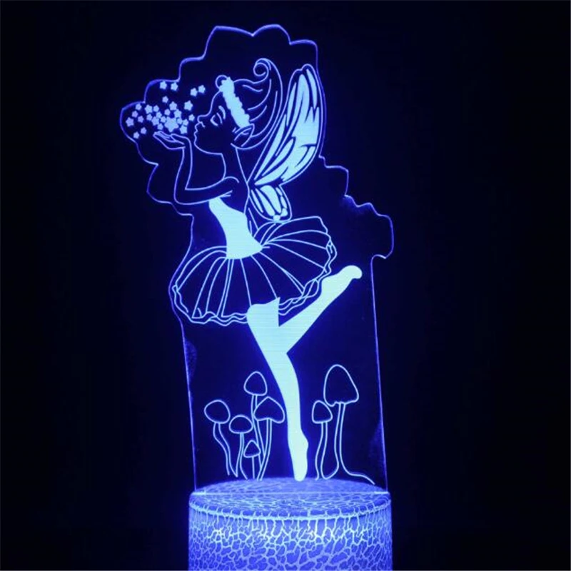 Дисней мультфильм СВЕТОДИОДНЫЙ Ночник светильник феи Динь колокол 3D лампа принцесса сенсорная Оптическая иллюзия настольная лампа украшение дома спальни подарок JE