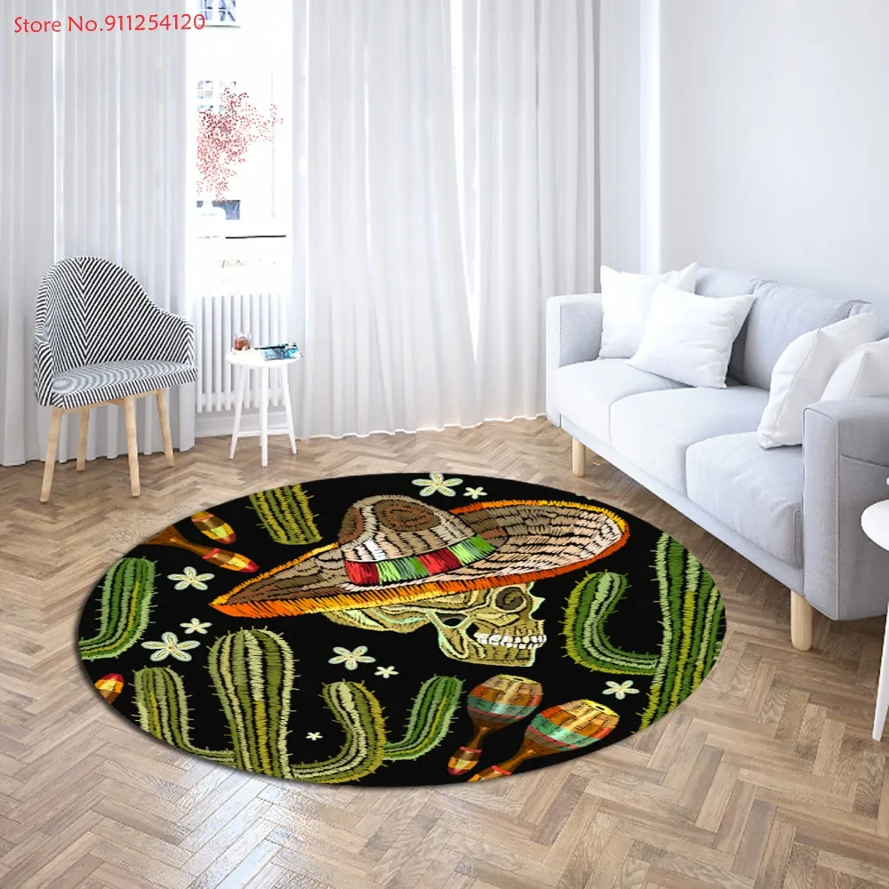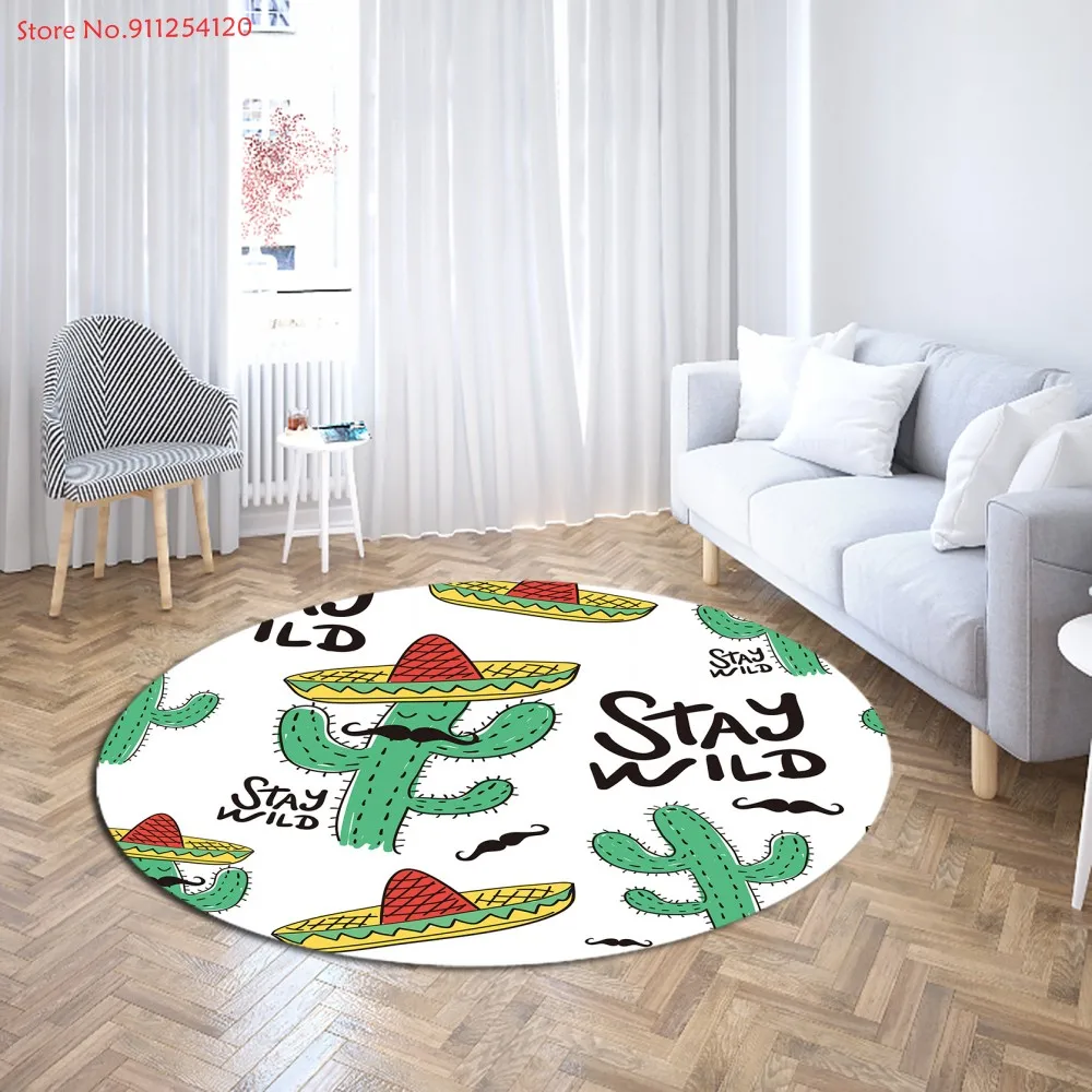 Тропические растения, круглый ковер, Зеленый Кактус, 3D принт, коврики, под заказ, круг, напольный коврик для гостиной, спальни, мультяшный стол, коврики