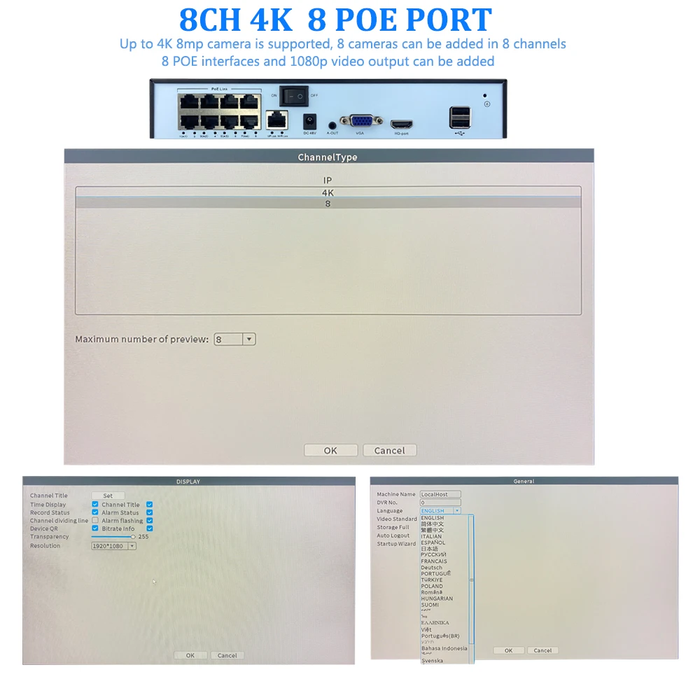 8CH Поддержка 8*8 Мп 4K IP-камера 8 POE порт,