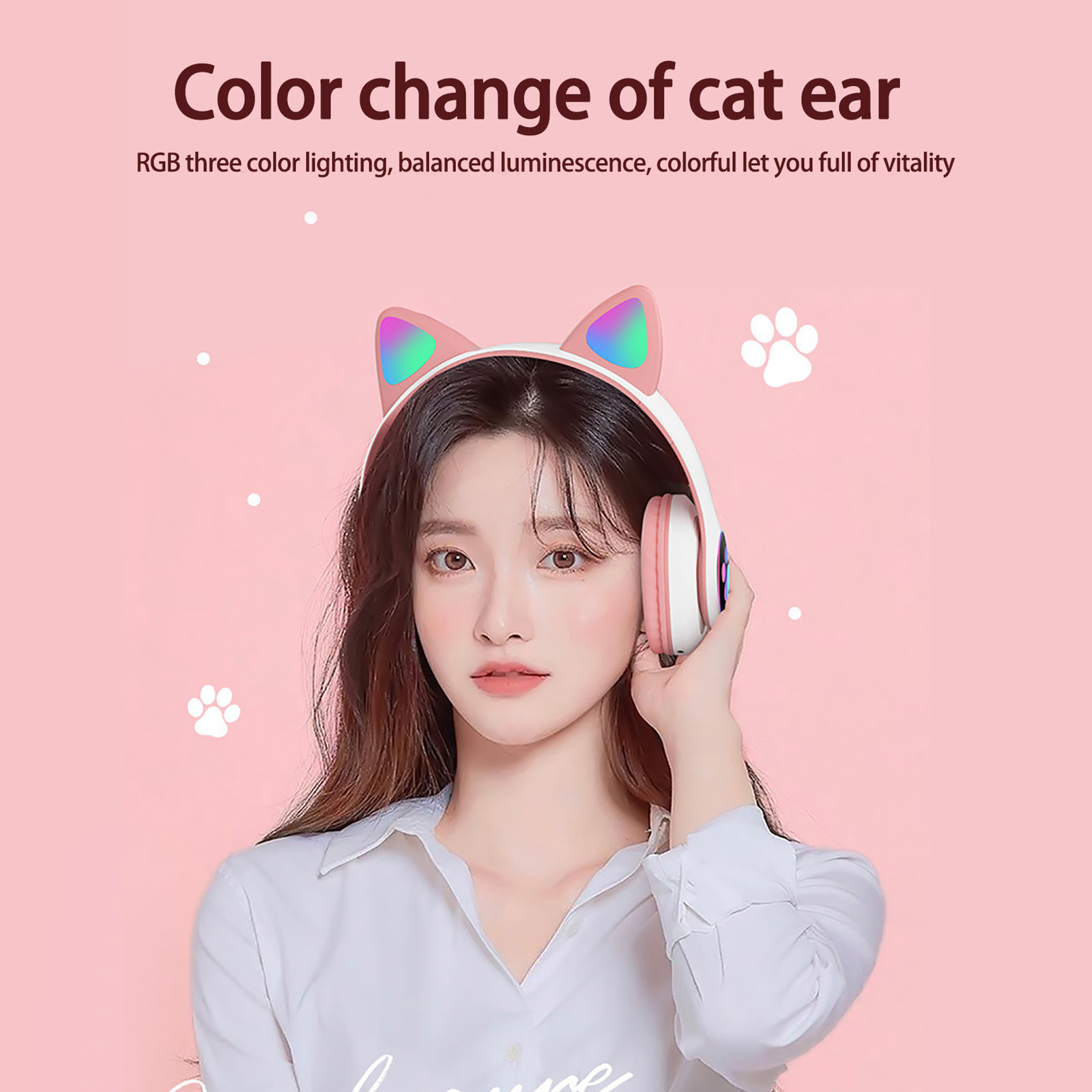 Милый складной Кошачьи наушники светодиодные светильники светящиеся наушники Универсальные наушники