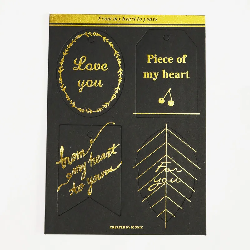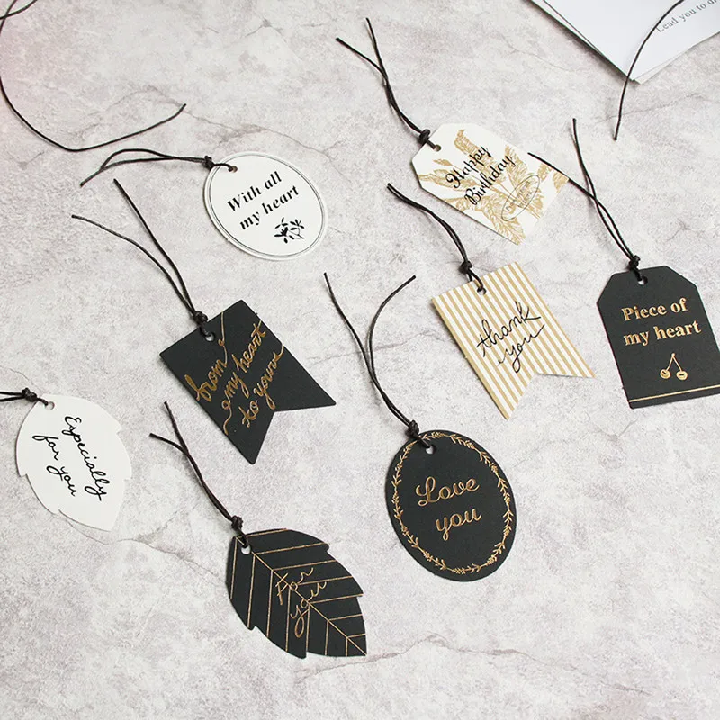 Description200 шт Черная Золотая фольга Горячее тиснение поздравительная открытка с сердцем спасибо бирка