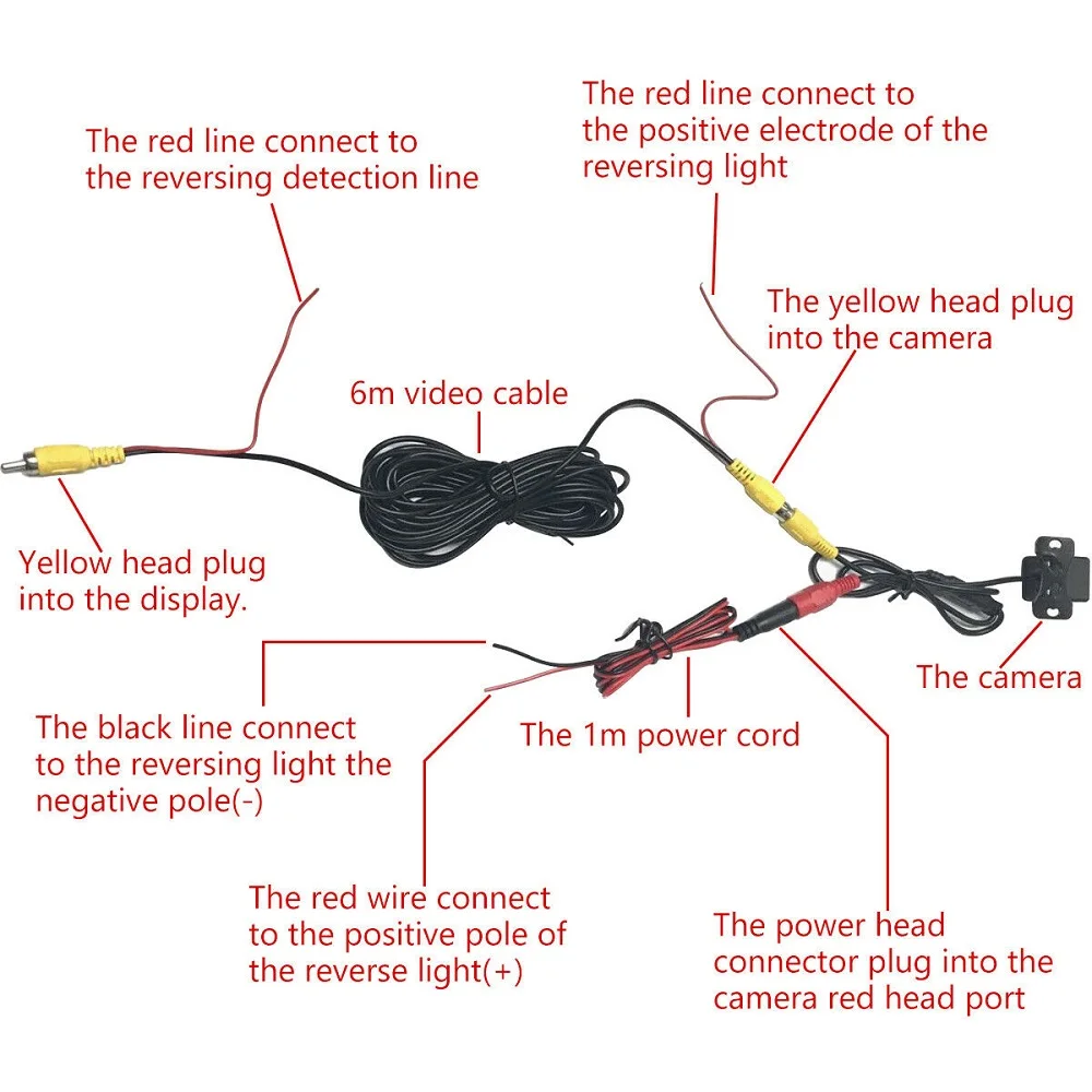 * 4. Профессиональное руководство --Наша запасная камера поставляется сПрофессиональное руководство пользователяИ он покажет вам, как подключить кабель и провод при установке камеры заднего вида. Вам не нужно беспокоиться об установке.