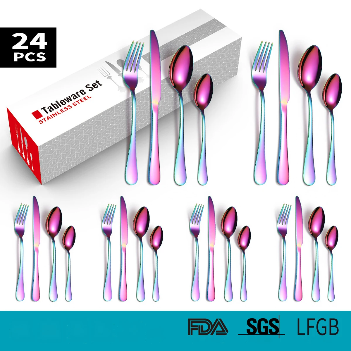 Набор посуды из нержавеющей стали золотой столовый нож вилка ложка столовые приборы набор столовых приборов класса люкс посудомоечная машина кухонная утварь