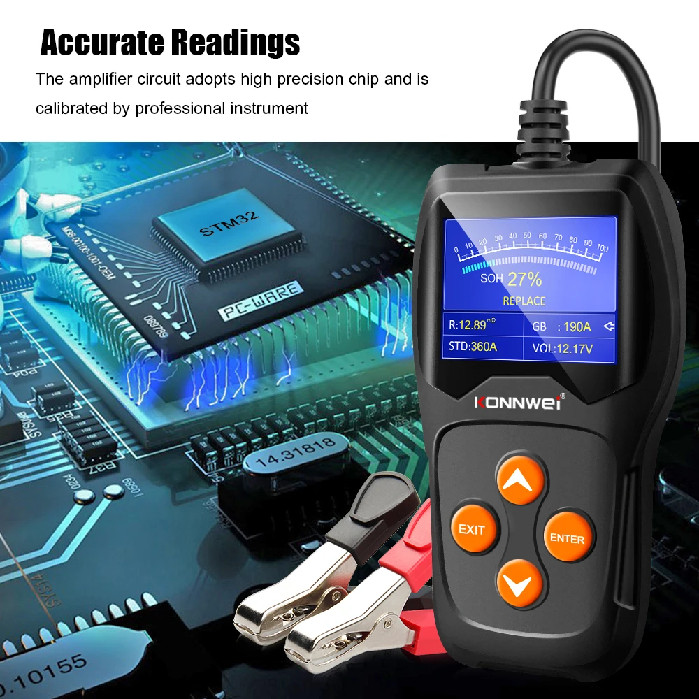 KONNWEI KW600-это новый аккумулятор-тестер, обновленный от старого классического тестера с подсветкой на рынке, направленный на быструю и точную проверку здоровья батареи, а также на проверку рабочего состояния генератора. Это профессиональный диагностический инструмент транспортного средства для проверки проблем с системой батареи с помощью инструмента мониторинга напряжения с графическим изображением, с цветным экраном и уникальным дизайном узора, бесплатным обновлением в течение всего срока службы, KONNWEI KW600-идеальный инструмент для тестирования батареи для вашей работы и семьи.