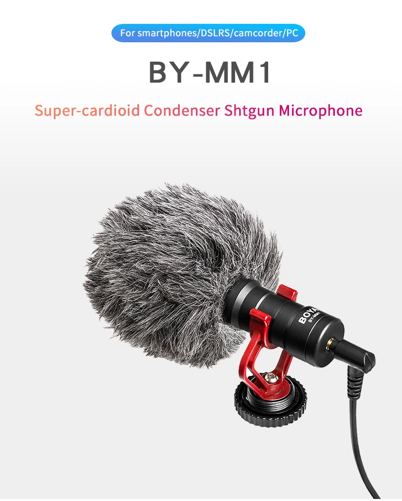 1 * пушистый windsheild 1 * BOYA BY-MM1 микрофон на расстоянии 1 * подвесом 1*3,5 мм до TRS Аудио Выходной кабель (для камер, регистраторов, аудиорекордеров, а также другими аудио/видео записывающие устройства.) 1*3,5 мм до TRRS Аудио Выходной кабель (для IOS и Android-смартфон, планшетный ПК или Mac)