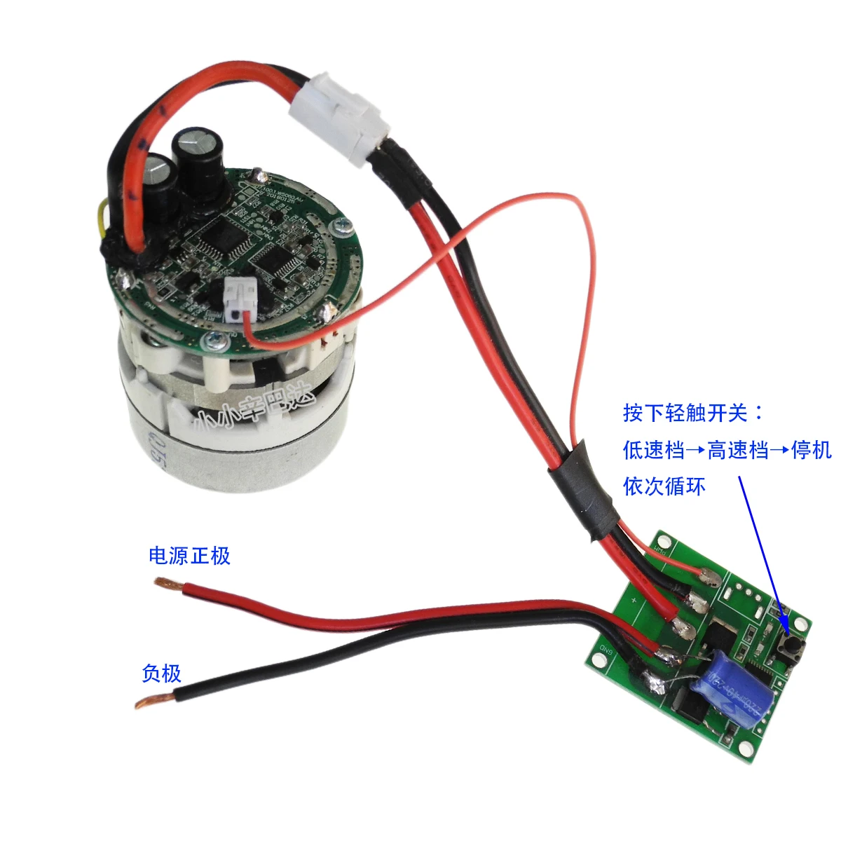 Двигатель имеет встроенный бесщеточный привод. Хотя он небольшой по размеру, он по-прежнему представляет собой трехфазный сверхскоростной бесщеточный двигатель.