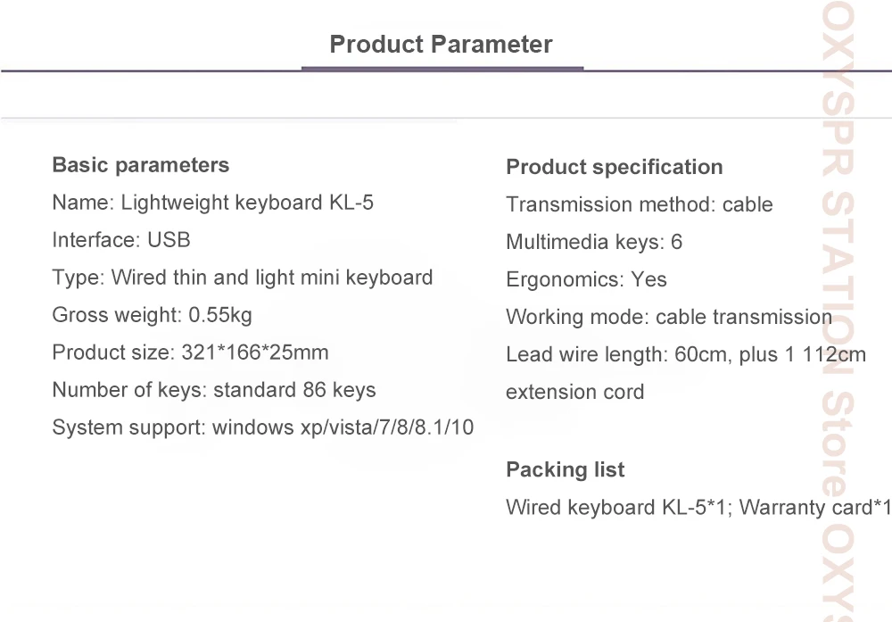 Проводная клавиатура KL-5 * 1; Гарантийный талон * 1.