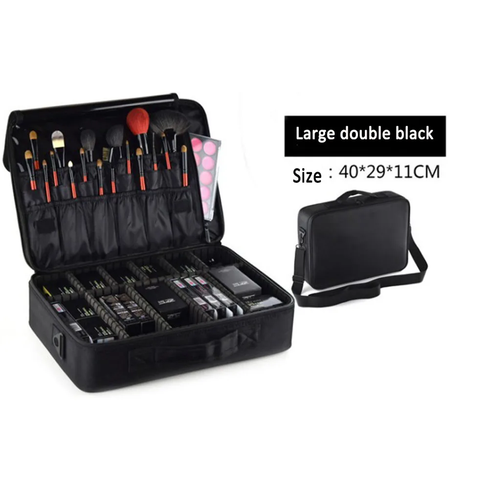 Большой емкости косметичка: 3 слоя косметичка обеспечивает достаточно места для хранения. Многофункциональная и дорожная косметичка: коробка поезда удобна для путешествий, и есть три способа переноски косметических сумок для хранения. Прочная верхняя ручка для портативности. Оснащена плечевым ремнем, его можно использовать как рюкзак или сумку-мессенджер. Встроенный дизайн багажного ремня, который можно повесить на багажную планку для портативного путешествия. Вы можете носить с собой большую косметичку для путешествий Высококачественная косметическая коробка для хранения: Наша косметичка изготовлена из высококачественной ткани Оксфорд, которая устойчива к брызгам, прочная, водонепроницаемая, прочная оправа и не легко деформируется. Водонепроницаемая ПВХ область легко моется, поэтому нет необходимости беспокоиться о передаче цвета косметических остатков. Прочная биметаллическая Молния SBS обеспечивает безопасность и длительное использование вашей косметики. Эта косметическая сумка для хранения-отличный выбор для путешествий Регулируемая перегородка: эта косметическая коробка с перегородкой подходит для женских косметических инструментов разных размеров, таких как губная помада, тени для век, аксессуары для путешествий или мужской набор для бритья, даже если вы можете держать ваши электронные аксессуары, туалетные принадлежности и таблетки для здоровья. Вы можете перемещать перегородки по мере необходимости, чтобы адаптироваться к различным косметическим средствам, и сделать их раздельными и упорядоченными. Гуманизированный дизайн позволяет сделать своими руками ваш креативный косметический пакет для хранения Большие размеры и идеи подарка: 40x29x14 см переносная коробка для поезда сохранит вашу косметику в порядке, и все будет легко увидеть и найти. Красивый внешний вид и изысканное мастерство делают его отличным подарком для дам, жен, друзей, коллег и профессиональных визажистов. Кроме того, это также лучший подарок на день рождения, День Святого Валентина, Рождество, День матери и другие праздники