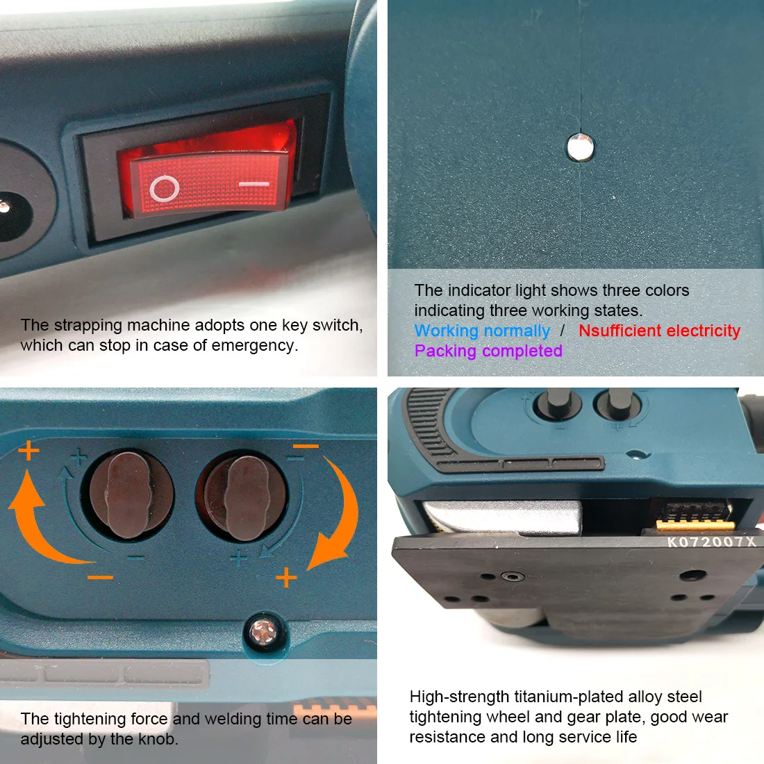 Форма уплотнительной ленты: Трение сваривается перекрывающей частью упаковочной ленты путем образования трения тепла. Когда кнопка fusion нажата, пока звук не прекратится, сварка завершена.