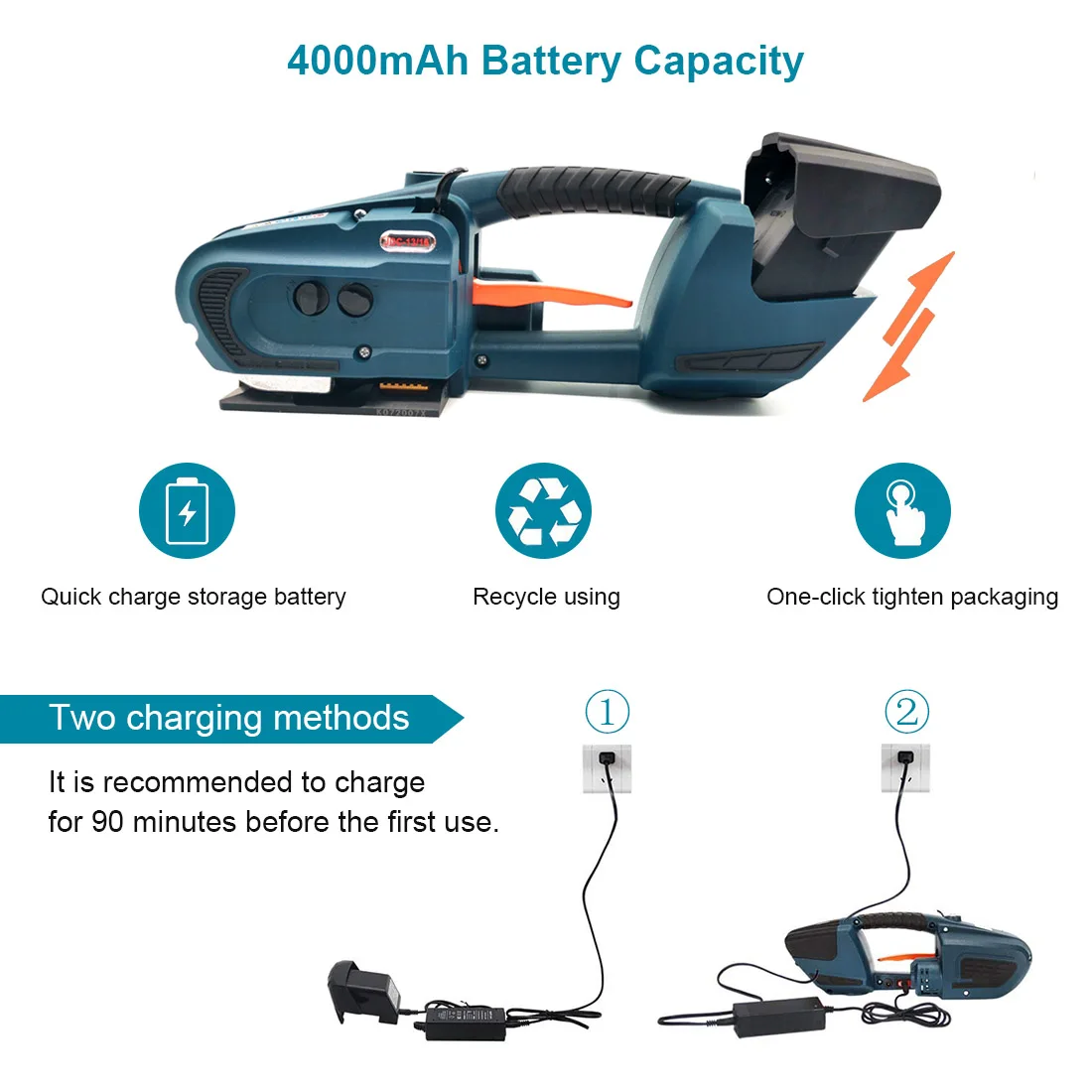 Две батареи: обвязочная машина с двумя литиевыми батареями Емкостью 4000 мАч. Один установлен на машине, а другой в подарок.