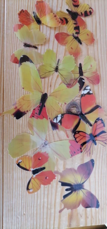 12 октября 2021дошло до Саратова за 3 недели, заказала не 3д, а обычных бабочек. У них есть не окрашеная, изнаночная так скажем, сторона. если складывать крылышки под 90 градусов то видно, что там просто бело. если лепить к стене, то возможно этого косячка будет не видно.