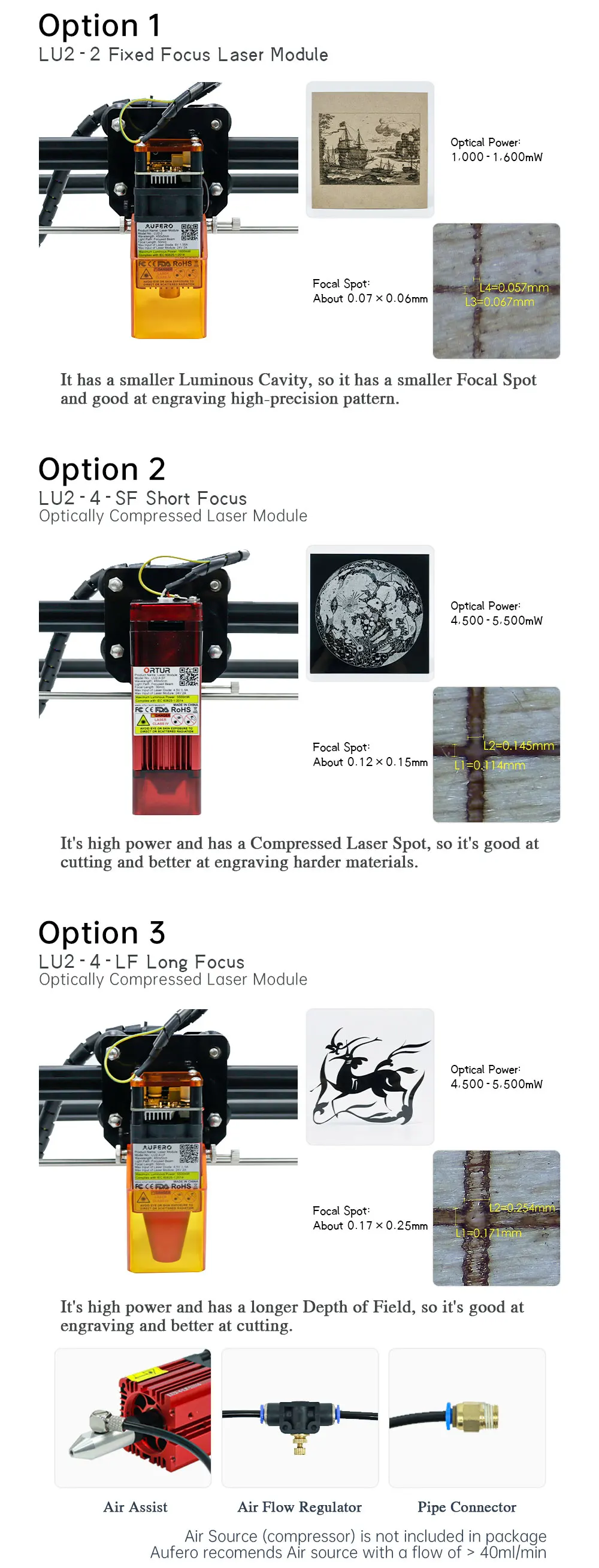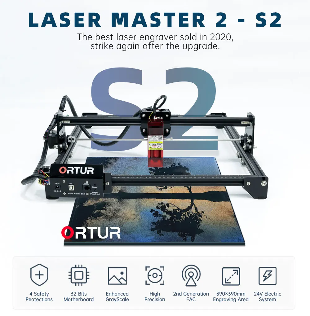 Новейшая технология лазерного луча с сжатым фокусным расстоянием:Ortur Laser Master 2 S2 использует новейший 5,5 W higly сжатый фокусное расстояние лазер modulediode, он имеет ультра-тонкий 0,06 мм острый лазерный фокус, с супер прониканием и точностью резки, может резать до 12 мм толстой древесины, 10 мм акрила, резной керамики и нержавеющей стали.