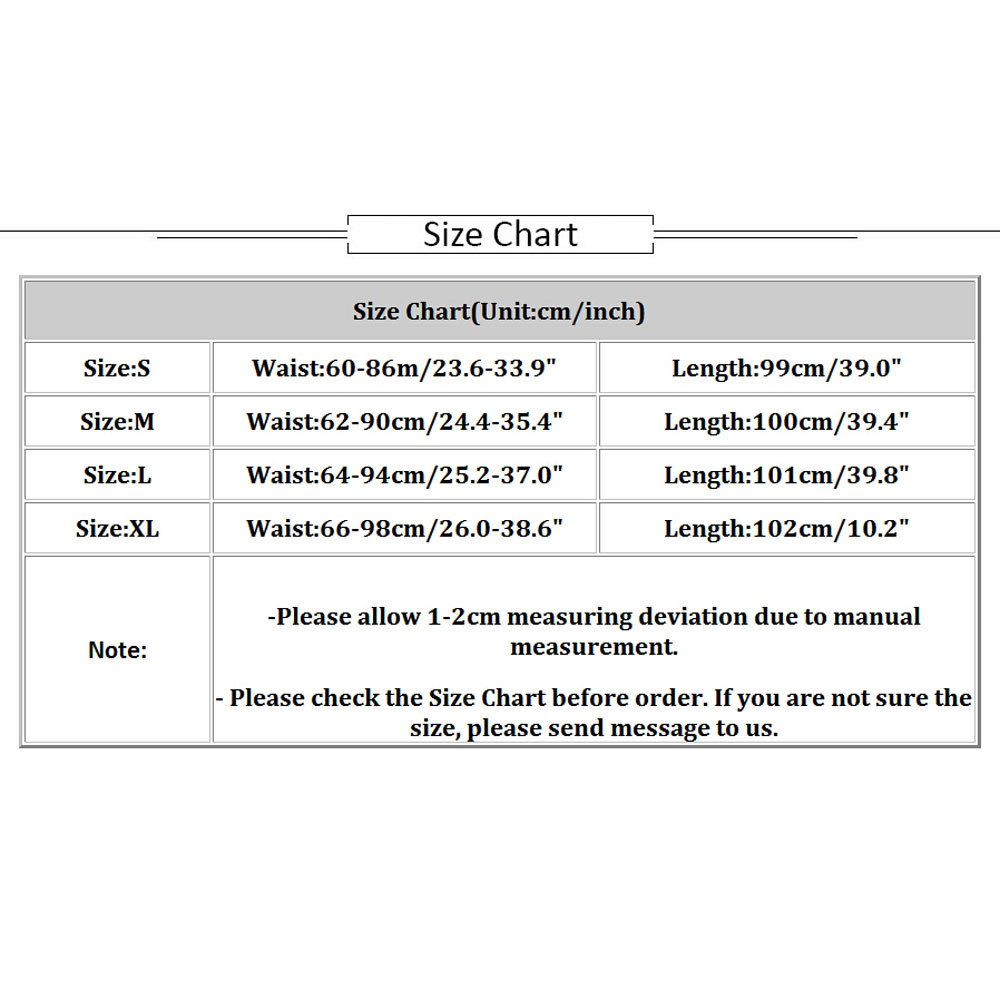 Размер Таблица (единица измерения: см/дюйм) Размер: S Талия: 60-86m/23,6-33,9" Длина: 99 см/39,0" Размер: M Талия: 62-90 см/24,4-35,4" Длина: 100 см/39,4" Размер: L Талия: 64-94 см/25,2-37,0 дюйма Длина: 101 см/39,8" Размер: XL Талия: 66-98 см/26,0-38,6" Длина: 102 см/10,2" Примечание:-Допускается отклонение в 1-2 см из-за ручного измерения Измерение.