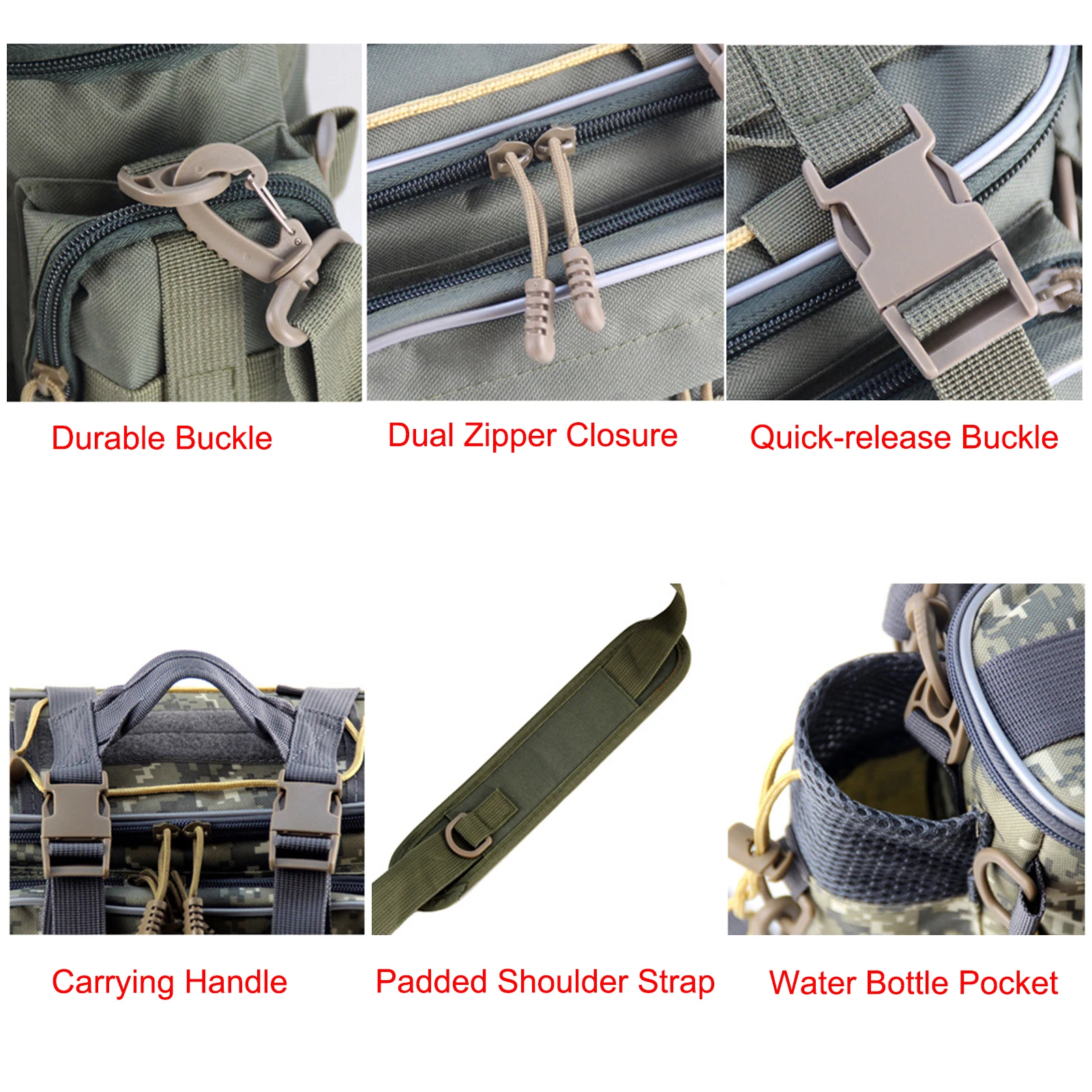 Рыболовная Сумка включает в себя множество карманов и внешнюю подвесную систему, чтобы обеспечить вместительное пространство для хранения и организовать все ваши снасти. Его можно использовать как наплечную сумку, поясную сумку и сумочку, отличный подарок для рыболовов и любителей активного отдыха.