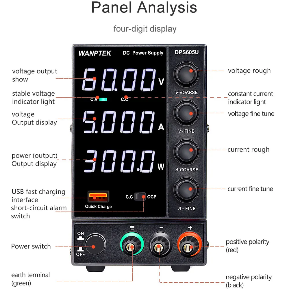 Новые продукты серии nasone. Эта модель представляет собой миниатюрный импульсный источник питания постоянного тока. Выходное напряжение и ток можно контролировать и регулировать с помощью переменных резисторов соответственно, поэтому он обеспечивает больше удобства и точности в регулировке напряжения и тока. Панель также обеспечивает Высокоточный цифровой дисплей с двумя/тремя окнами напряжения, тока и мощности, чтобы пользователи могли интуитивно видеть состояние использования тока и различные параметры машины