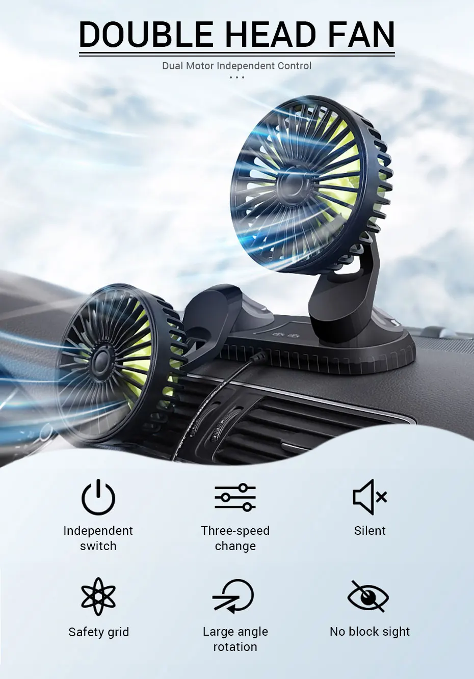 1. Автомобильный Вентилятор разработан с учетом безопасности, может быть установлен на dashborad, не падает, нет слепых зон. Это делает грязь более безопасной и делает водителя комфортным. 2. Просто закрепите портативный вентилятор там, где вы предпочитаете. Горизонтальная и вертикальная регулировка на 360 градусов позволяет свободно наслаждаться прохладным свежим воздухом. 3. Питание от USB-кабеля. Он также поддерживает зарядку USB от автомобильного зарядного устройства, компьютера, ноутбука, мобильного питания, USB-зарядного устройства, адаптера мобильный телефон и т. д. 4. Благодаря высококачественному мотору Максимальная скорость вращения достигает 4000 об/мин. Три скорости предлагают вам больше вариантов ветра. Вентилятор аккумулятора может быстро охладить вас и удалить нежелательные сигареты табачный дым или пыль, устранить запах домашних животных, улучшить циркуляцию воздуха и сохранить воздух свежим. 5. Этот небольшой дорожный вентилятор имеет компактный размер. Легкий, удобный для удобства переноски или хранения. Вы можете использовать его как автомобильный вентилятор, портативный вентилятор, настольный вентилятор. Идеально подходит для вождения, кемпинга, рыбалки, пеших прогулок и других видов деятельности в помещении и на открытом воздухе.