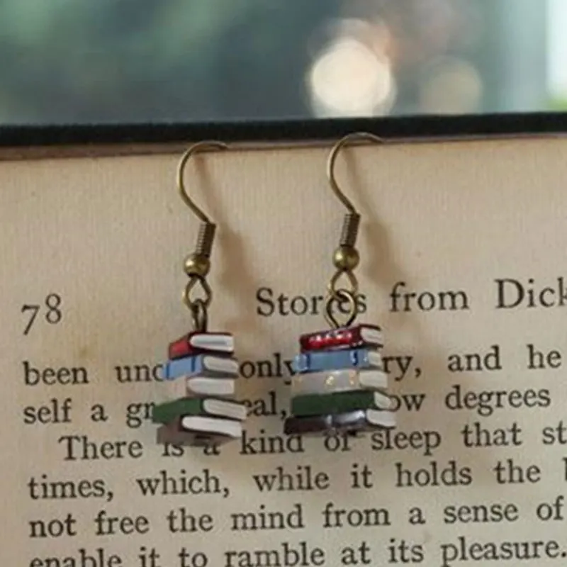 Необычные серьги-капли, книги, серьги, многоцветные серьги-крючки, висячие серьги, библиотеки, кучи книг, серьги для творчества