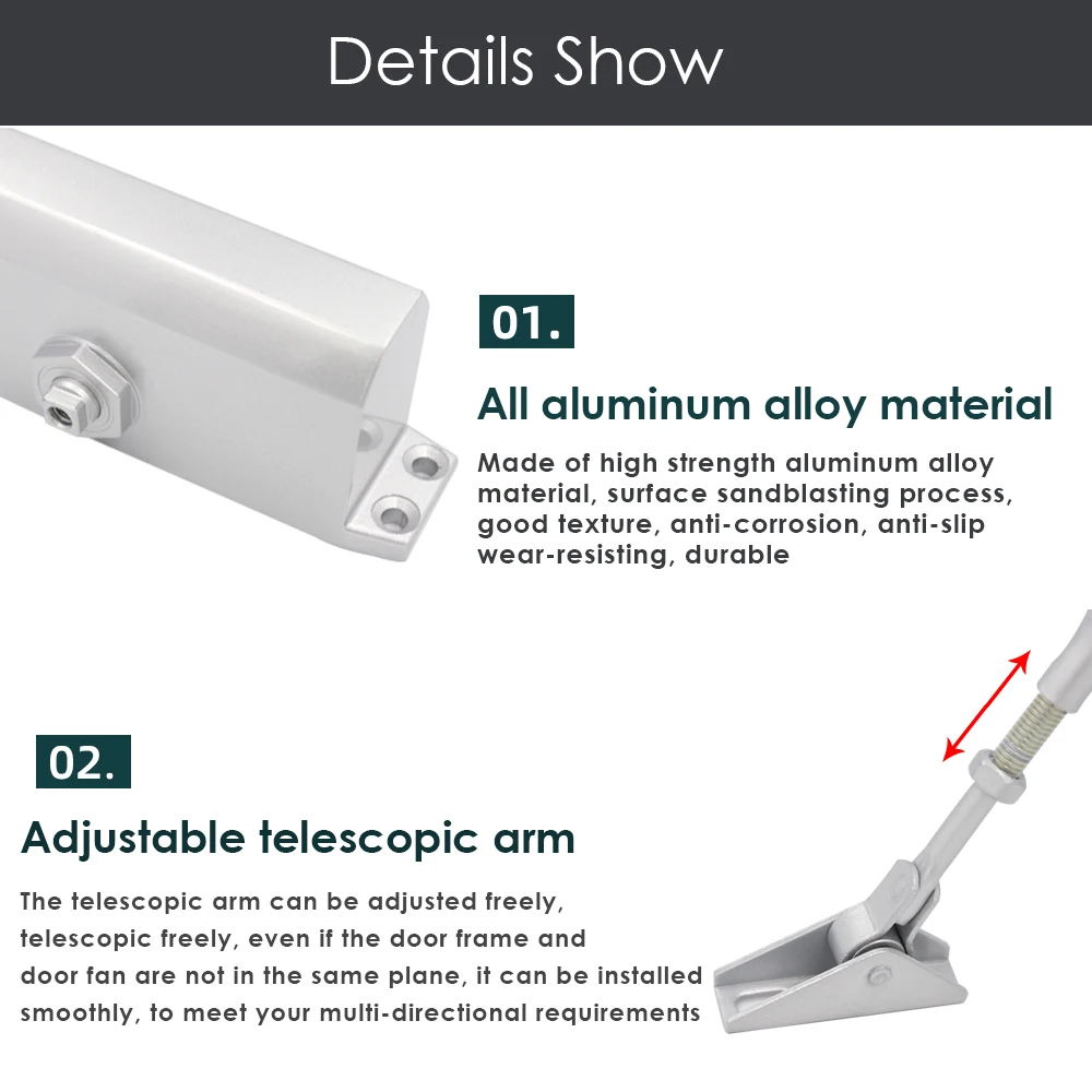 Hydraulic Buffer Automatic Door Closer 45KG to 85KG Mute Closing Door Hardware Adjustable Speed Door Closing Equipment