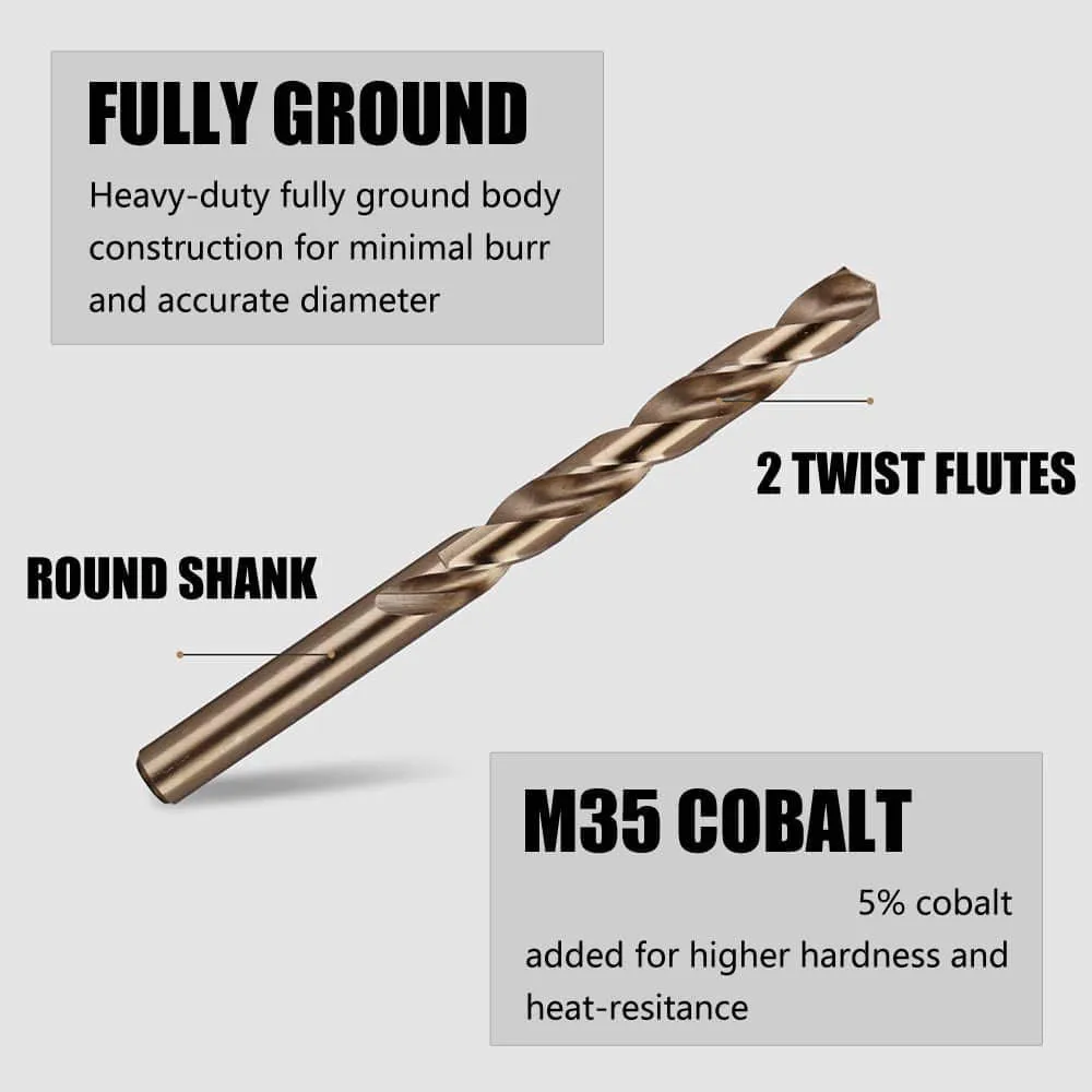 Набор кобальтовых сверл Drillpro M35 HSS-Co Jobber Длинные спиральные сверла с металлическим корпусом для сверления дерева и металла из нержавеющей стали