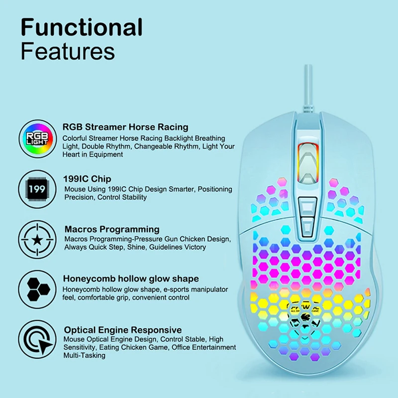 Colorful RGB lights bring excellent visual effects, making it a perfect gaming mouse.
