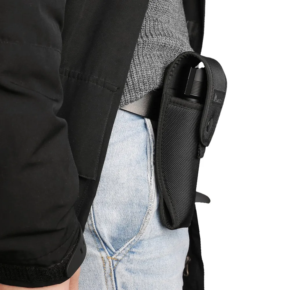 2. Чехол для переноски фонарика с застежками на липучке и кнопками на задней части, можно прикрепить к поясу или Молле.