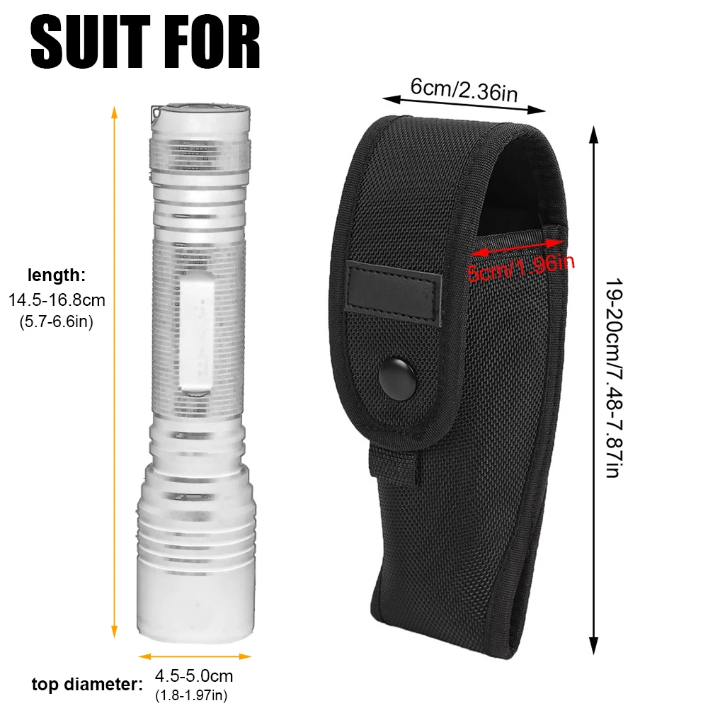 3. Специальный двойной оснастки дизайн, Совместимость с большим количеством фонарик размеров, подходит для фонарика Длина: 145-168 мм/5,7-6.6in, подходит для фонарик верхний диаметр: 45-50 мм/1,8-1.97in.