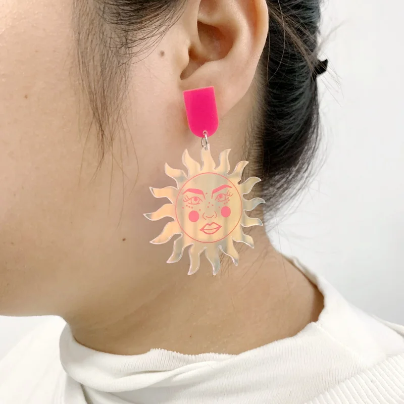 Лазерная резка радужные акриловые фанки Небесный Таро солнце лицо серьги женщина 2021 мода ювелирные изделия