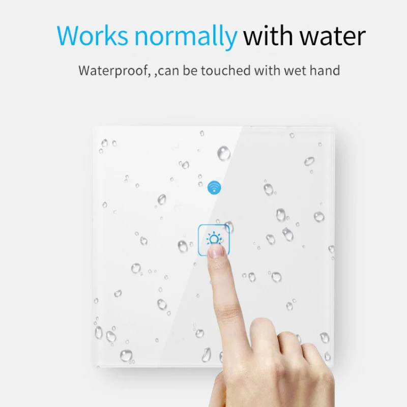 Работает нормально с водой водонепроницаемый, может быть тронут влажной рукой