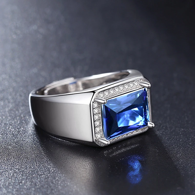 Роскошные мужские кольца 925 серебряные ювелирные изделия Прямоугольная форма создан сапфир Циркон драгоценный камень открытые, кольца на палец для свадьбы обещают Вечерние