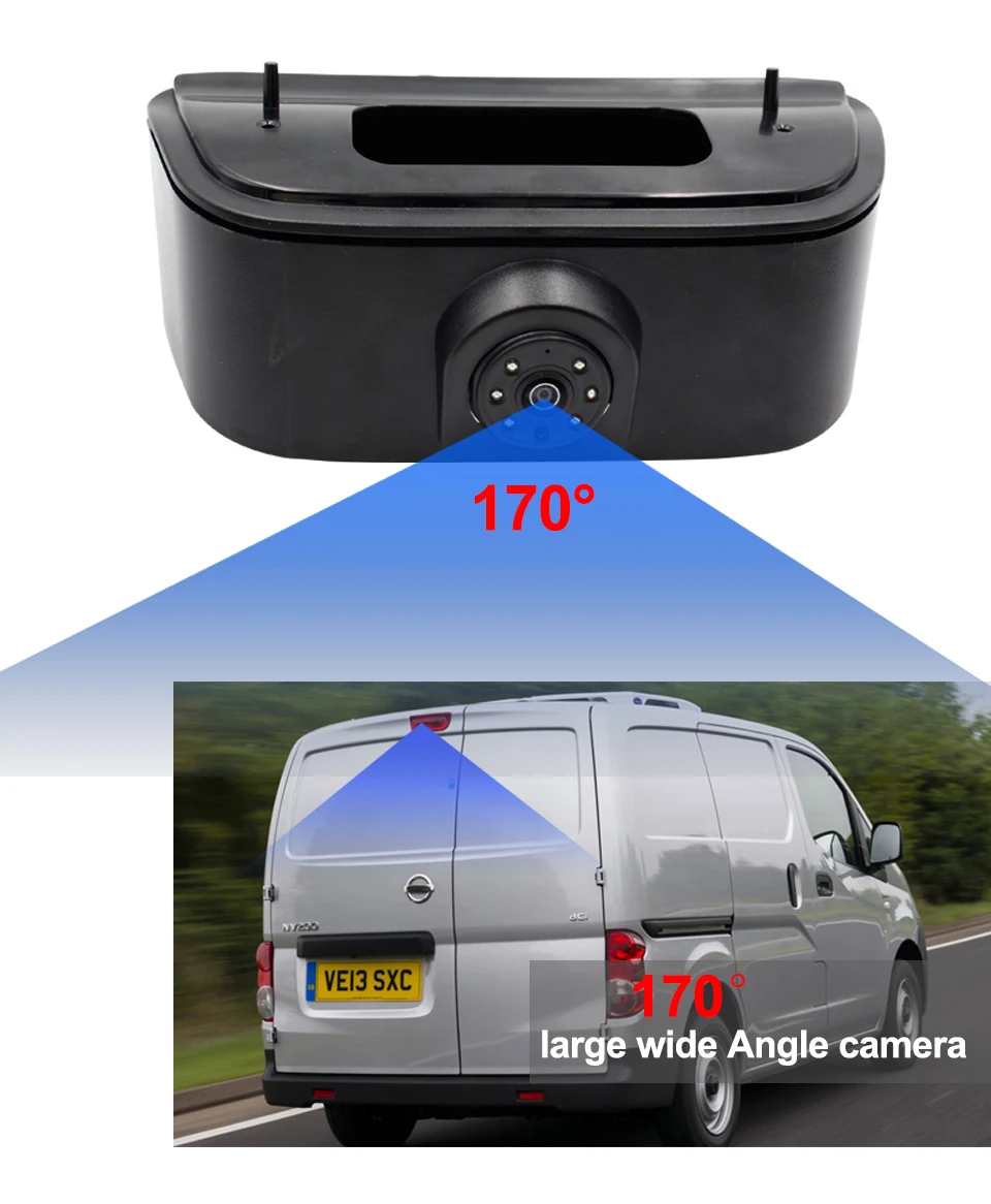 По умолчанию NTSC (ТВ-система) Плоский объектив пикселя: 1280*720; Рыбий глаз объектив пикселя: 1280*1080 Плоский объектив 130 ° Угол объектива; Рыбий глаз объектив 170 ° Угол объектива Идеальное ночное видение Класс защиты IP67/IP68 Минимальное освещение 0,01 люкс Рабочее напряжение: DV12V Рабочая температура:-30 ℃ ~ + 80 ℃ Подходит: для Nissan NV200 2010-2017 Отличное ИК Ночное видение. 15 метров видео удлинитель Нет просверленных отверстий. Водонепроницаемый. Стандартный разъем RCA. Эта камера не может видеть крюк прицепа в задней части. Материал: АБС-пластик Цвет: черный