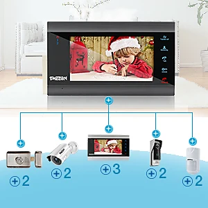 4. 【Множественная интерком】до 2 Дверных колокольчиков может быть соединена с 4 комнатными мониторами. Мониторы могут передавать звонки и общаться друг с другом.