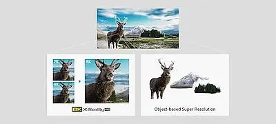 Любой контент в высоком разрешенииС помощью уникальных функций Sony контент с любым разрешением может выглядеть так,будто сделан в 8K. Процессор X1™ Ultimate в два раза быстрее, чем X1™ Extreme.Он точно анализирует и обрабатывает данные, чтобы придать изображению насыщенность,богатство текстуры и детализацию, присущие разрешению 8K, которое в четыре раза выше 4K.Даже разрешение фильмов, снятых в 4K и 2K, повышается, чтобы максимально приблизить его к качеству 8K.За это отвечает функция 8K X-Reality™ PRO, которая использует уникальную базу данных для 8K-изображений.Затем разрешение каждого предмета оптимизируется с помощью технологии Object-based Super Resolution,чтобы добиться реалистичности текстур.
