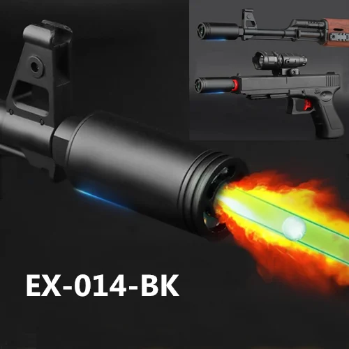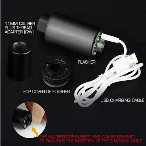 Description Features: Tracer and Muzzle Flash Perfect for GBB Forward Facing LEDs For Pistols and AEGs 14mm CCW thread Brighter than before Included with 11mm CW adapter USB charging cable included Illuminates BBs leaving the barrel Illuminated on/off switch Battery rated to last for 20,000 shots Built-in rechargeable Lithium battery UV LED on both sides of unit for even lighting Charging status LED Sustainable up to 35 rounds per second - Tested this myself, works perfectly! Power protection safety system Identify hits much easier Looks amazing in the dark Pretend you're a stormtrooper Ideal for hiding inside rail systems Can be installed inside a suppressor Name:airsoft flame auto tracer Item No.:EX-014 Material:aluminum alloy + electronic components Package included: 1x airsoft flame auto tracer 1x charging cable 1x 11mm caliber Plus thread adapter(CW)
