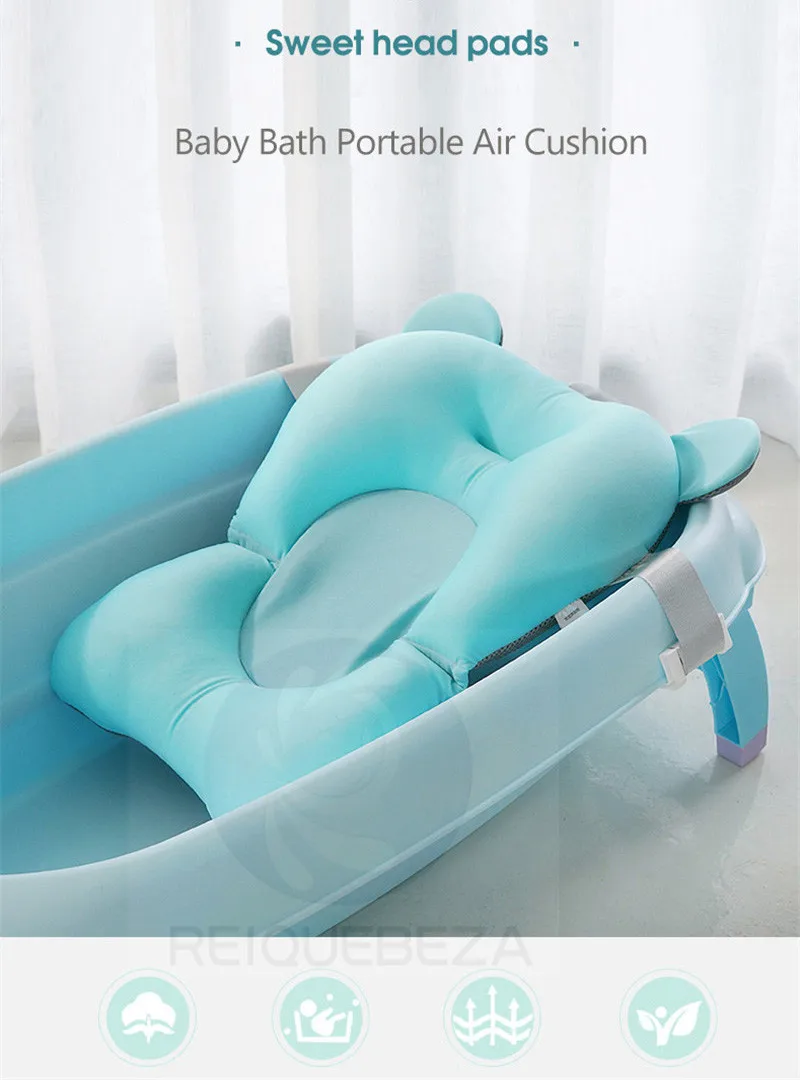3-12 months baby size is not afraid to be beaten. The baby will be choked when they are bathing while they prone to move at their will. It has a cotton pad for laying head and a long strip design.