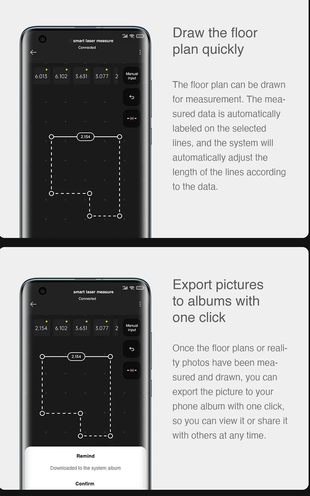 Используйте bluetooth для прямого подключения paroduct на мобильный телефон и автоматически активируйте приложение Mijia, реализовав множество практичных и простых в использовании функций расширения, таких как Примечания для хранения данных, отображение плана пола и измерение срока службы.