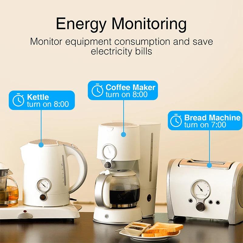 Вы можете спроектировать и установить определенное время для автоматического включения/выключения вашего домашнего устройства в гостиной, кухне, спальне или ванной комнате, что помогает сэкономить электричество.