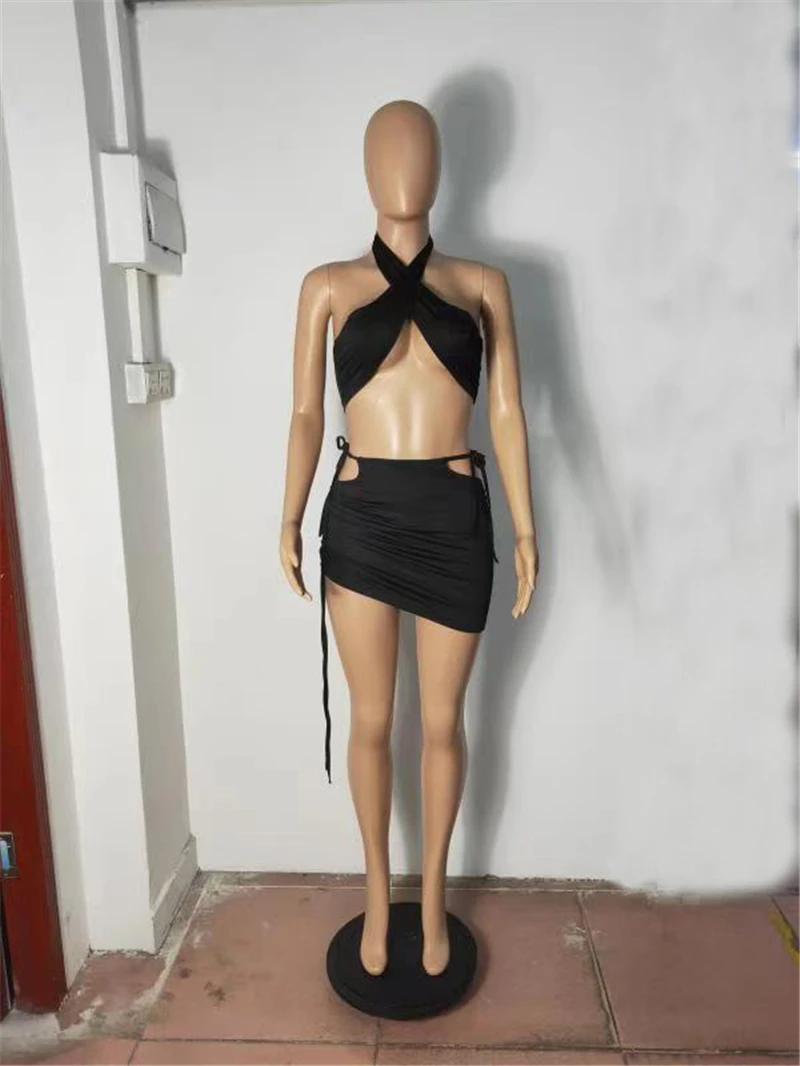 Adogirl женский сексуальный укороченный топ на бретельках со шнуровкой, открытая облегающая мини-юбка, комплект из двух предметов, платье, модный пляжный костюм для ночного клуба
