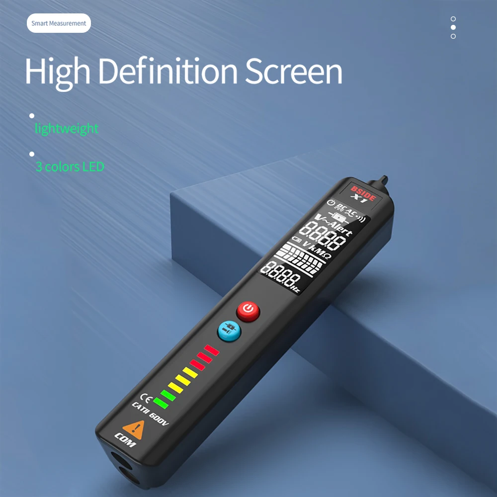BSIDE X1 тестовый карандаш имеет двойной режим обнаружения, т. Е. Высокая/низкая чувствительность NCV обнаружения. Это также мультиметр, который может измерять напряжение переменного/постоянного тока, сопротивление, частоту, определить нейтральный/живой провод и провести непрерывный тест. Карманный размер с большим ЖК-экраном, он прост, удобен и безопасен в использовании.