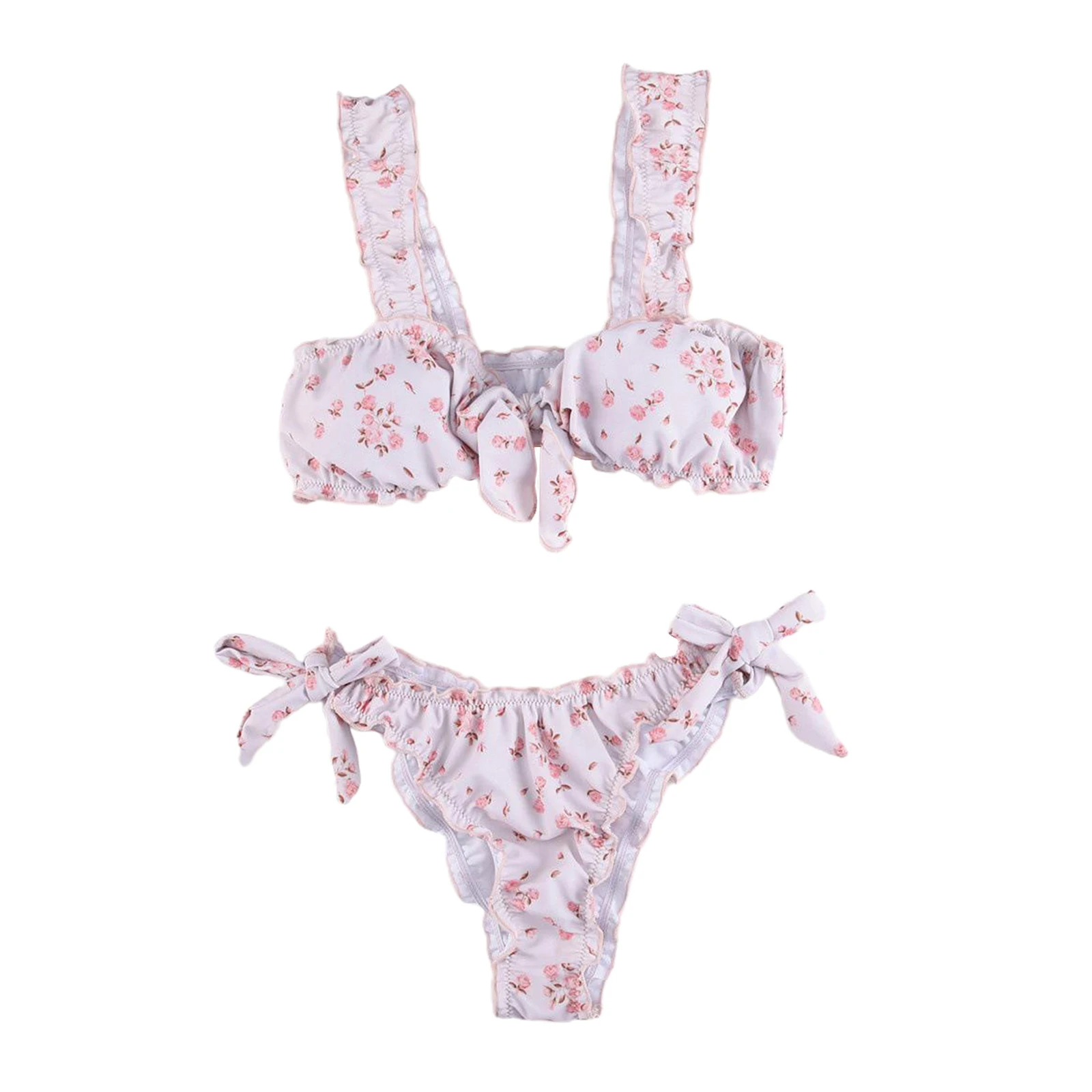 Бикини из двух частей, с цветочным принтом, с завязками спереди и сбоку, удобно носить.