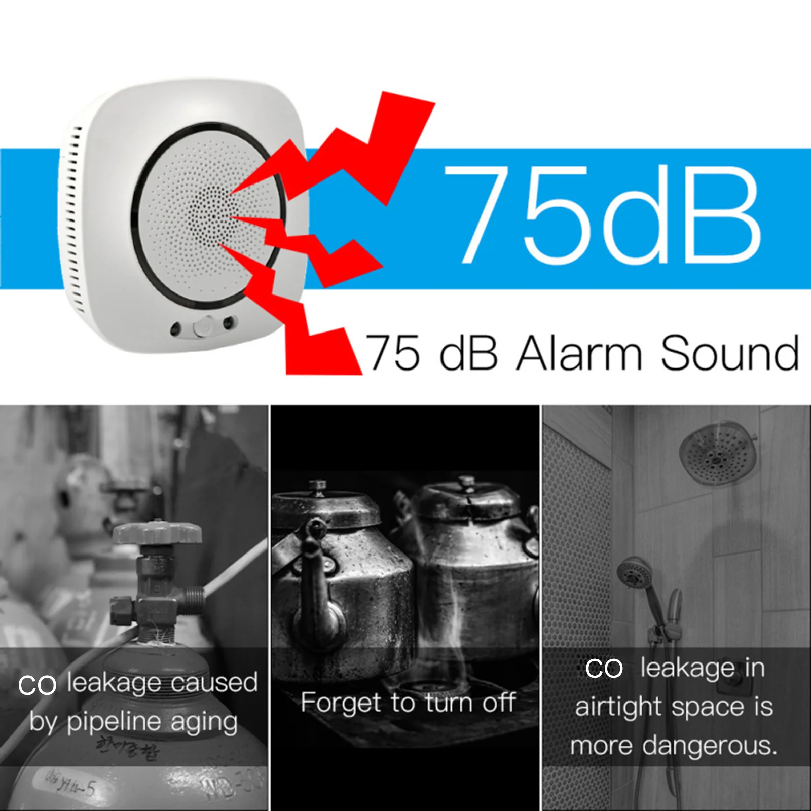 * Применение: детектор окиси углерода Wi-Fi можно использовать на кухне, в ванной комнате, в магазине для барбекю, в зимнее отопление и так далее.