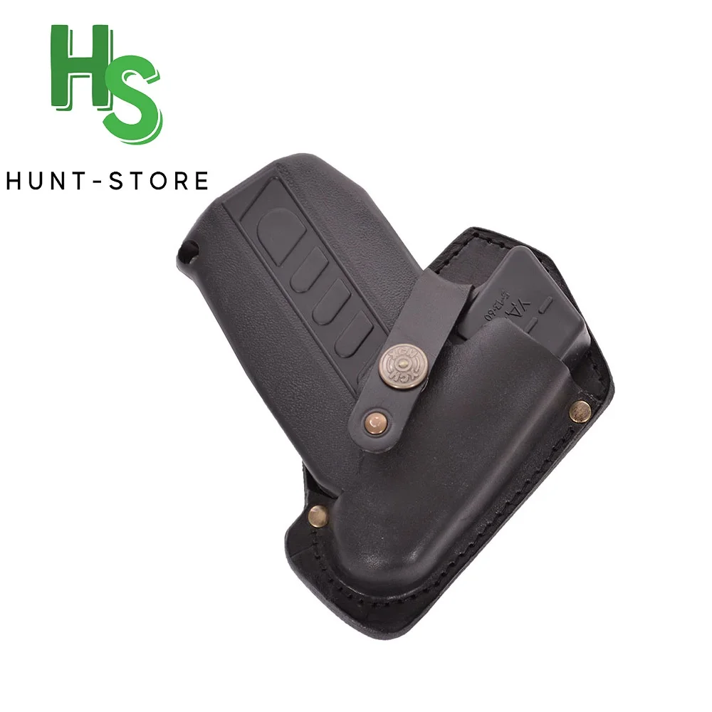 Кобура предназначена для ношения оружия самообороны на правой стороне под правую руку. Расположение пистолета вертикальное относительно ремня. Просечка на кобуре рассчитана на ремень шириной до 50 мм. Кобура поясного ношения. Наличие скобы обеспечивает быстрое снятие и надевание кобуры.