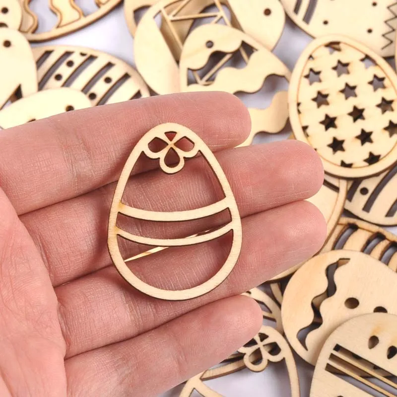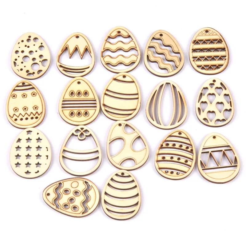 25pcs mix Easter Egg Pattern Natural Wood Pendant Scrapbooking Carft for Home Drop Hanging Decoration diy 40mm mt2675