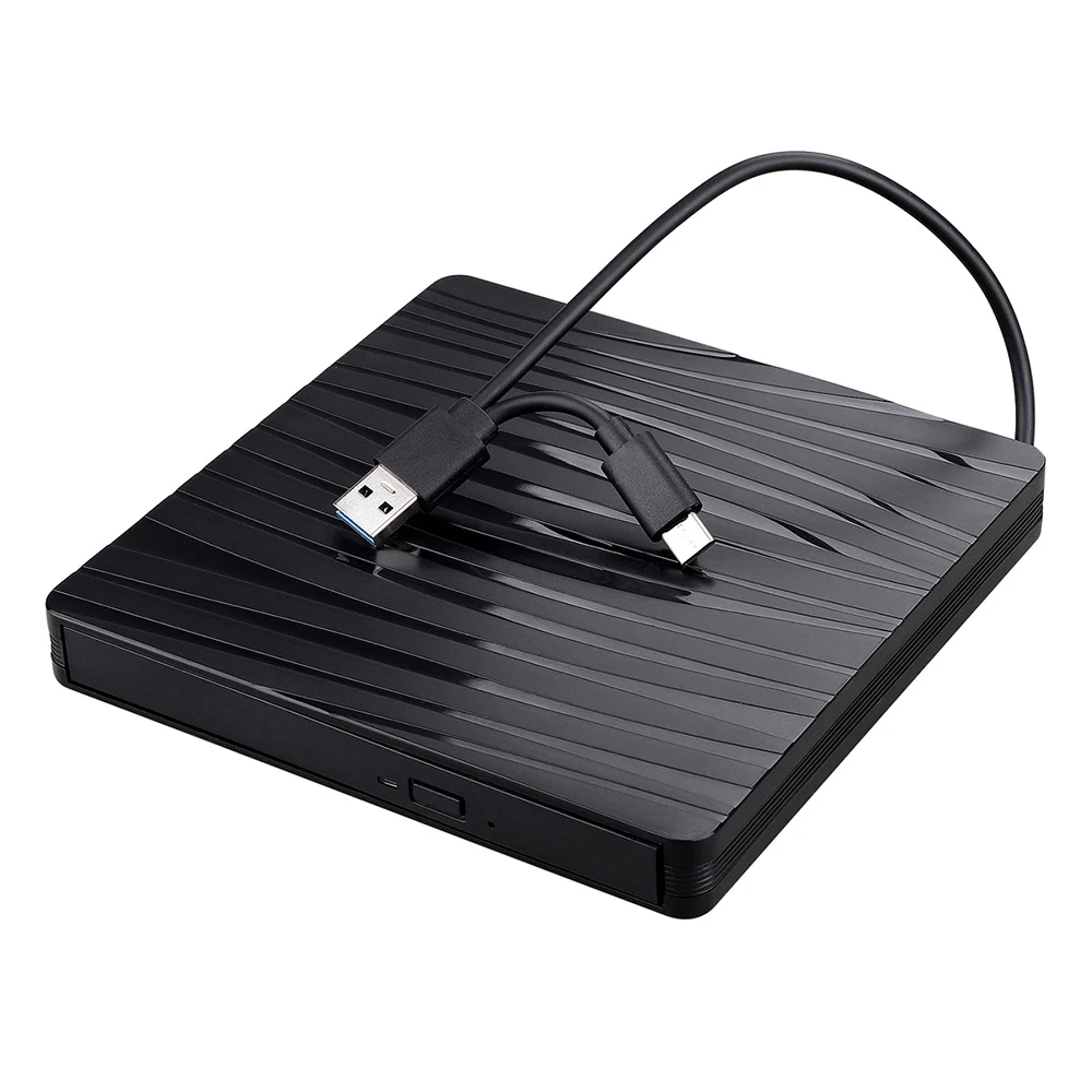 USB3.0 + Type-C двухпортовый Портативный внешний оптический привод CD/DVD плеер ультра-тонкий внешний DVD-ROM-накопитель для Windows/Mac OS