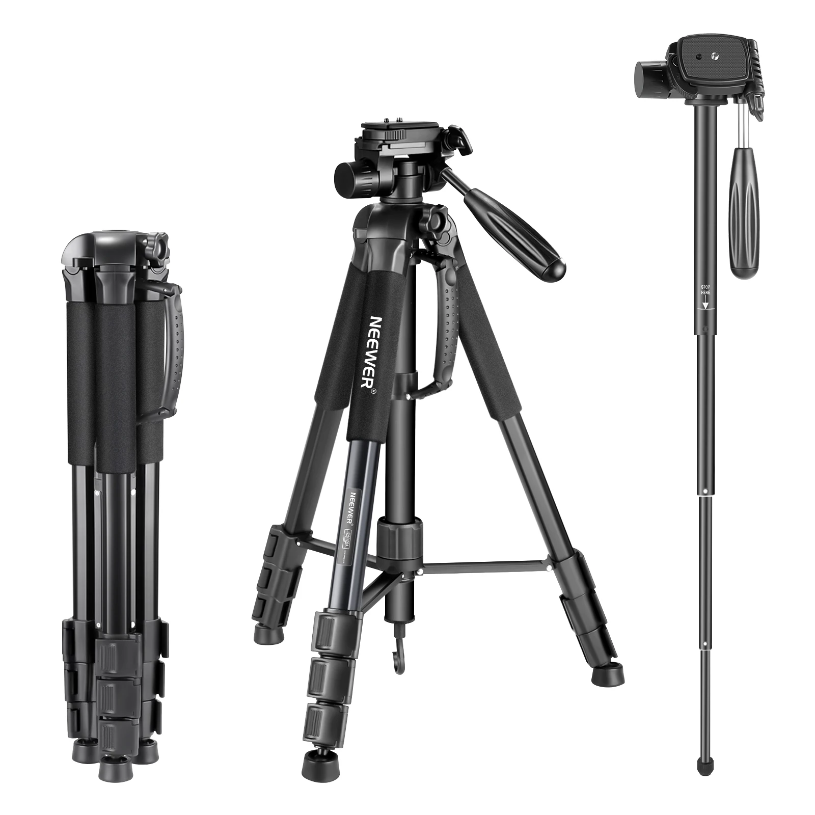 Светильник-вес практичный 2-в-1 штатив монопод: можно преобразовать в монопод за считанные секунды с регулируемой высотой колеблется от 17,3 дюймов/44 см до 52,8 дюйма/134 сантиметров; весит всего 4 фунта/1,8 килограммов, светильник, но прочный; Поставляется с сумкой для хранения, легко для приготовления пищи на воздухе фотографов для переноски и транспортировки